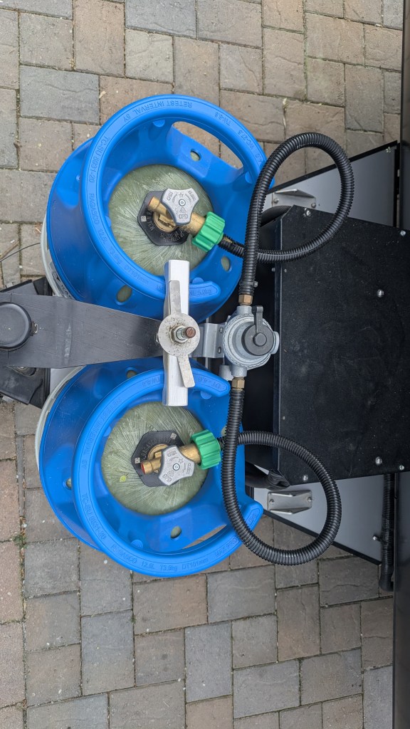 This trailer had a 12v compressor ‘fridge that worked well and froze ice easily overnight. This is encouraging as we plan to do this upgrade so that we can keep it running under tow via trailer battery (the Tesla doesn’t provide 12v at the 7-pin connector). You can hear the compressor running but it’s reasonably quiet. Way quieter than the water pump…