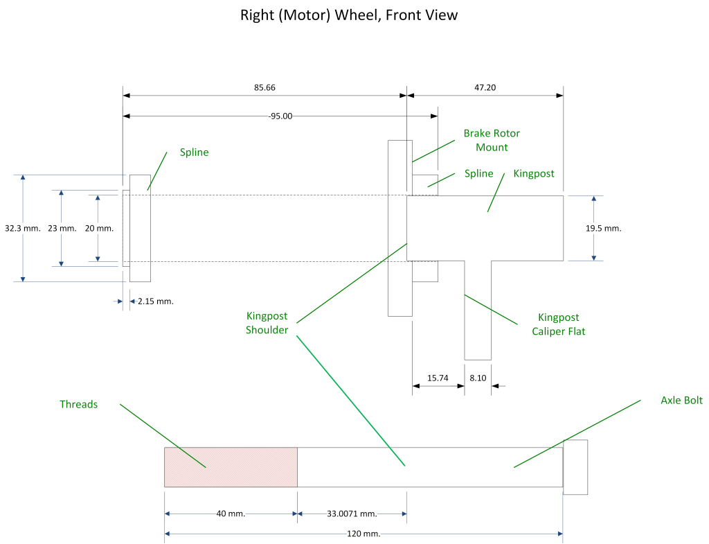 I contacted Grin and they graciously offered up the mechanical drawing for the spline assembly of their universal single-side adapter. We’d make our own! Oh the folly of engineers with a CNC machine. The idea was to mill an adapter that picked up that same suspension pivot point much more directly than our attempt with the universal adapter. The result would be a compact torque arm that was more solid and aesthetic. Yeah I said it, more aesthetic.