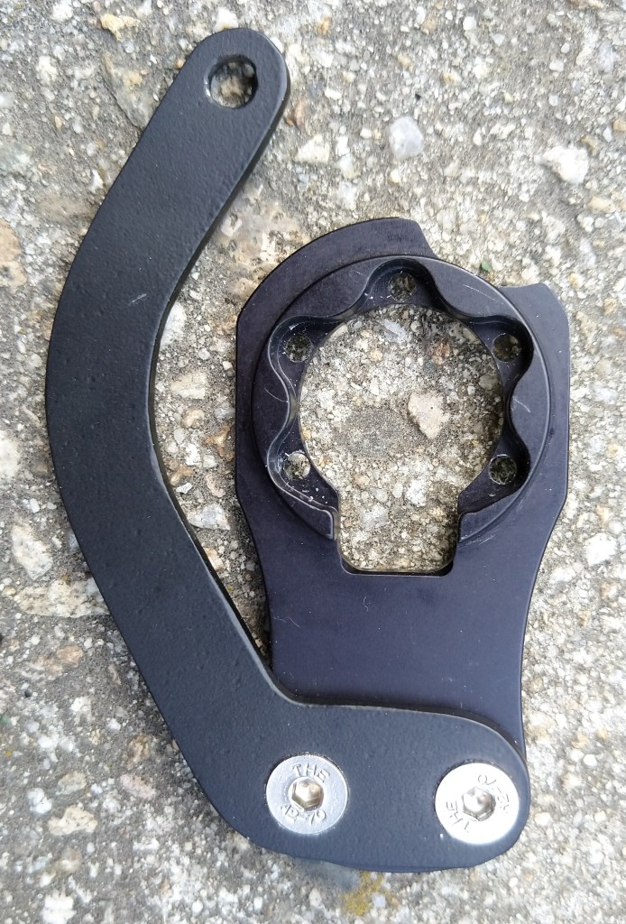 …now for the hard part. A drive hub needs a mechanism to prevent the stationary portion of the hub from rotating when power is applied. I ordered the Greenspeed Single-Side Adapter from Grin because it looked closest to what I’d need and they didn’t yet offer an ICE adapter. Maybe I’d get lucky and it would just work. I wasn’t lucky.